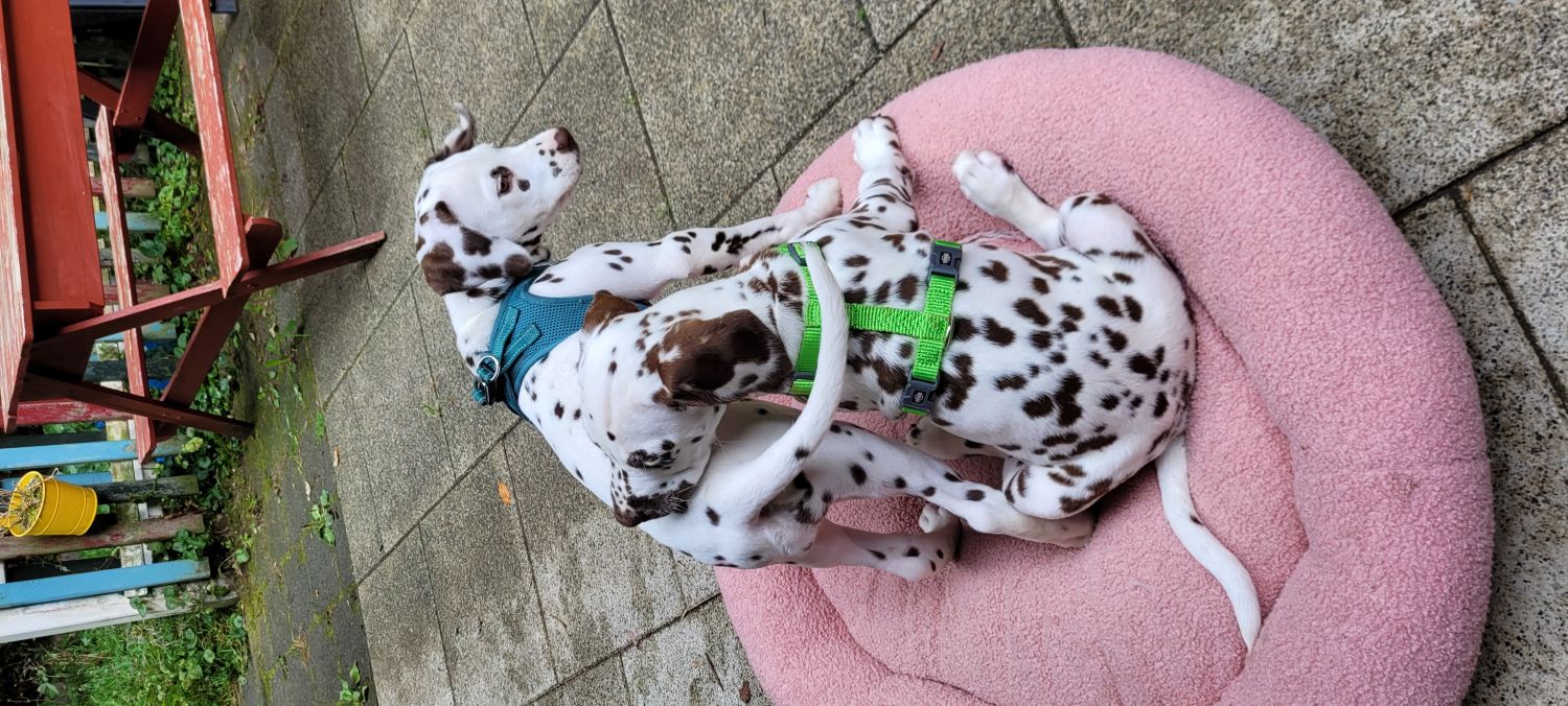 Bertha heißt jetzt Donna und wenn es das Schicksal möchte, wird sie in der Zuchtstätte "Reinbeker Dalmatiner Zauber" künftige Zuchthündin. Sie teilt ihr Zuhause mit Coco und Devito.